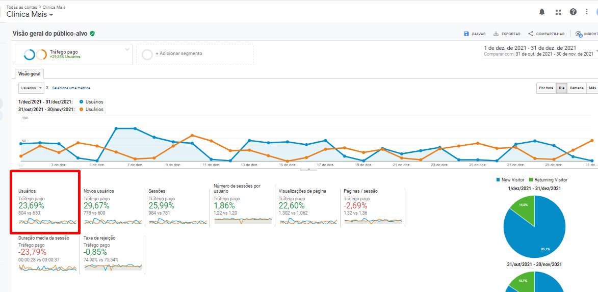 Na imagem acima, podemos ver o tráfego gerado pela clínica médica popular no mês de dezembro.