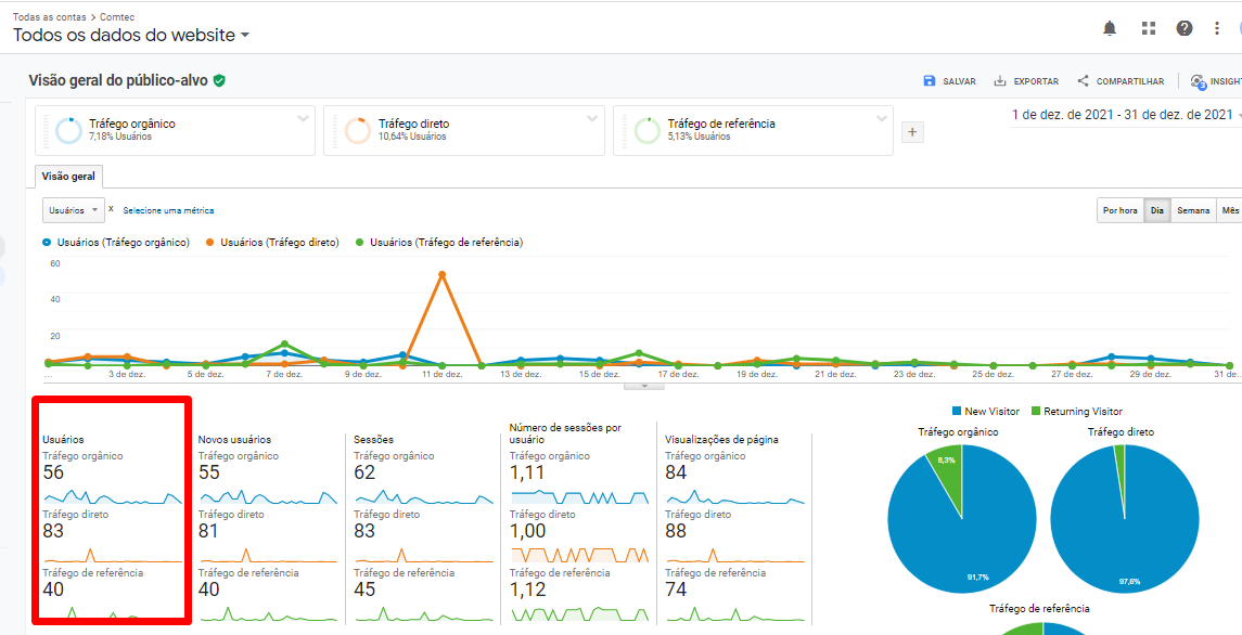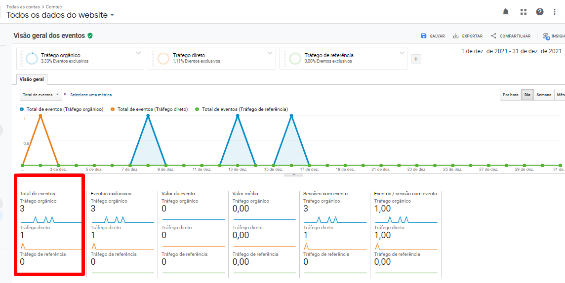 Imagem: Demonstração dos eventos de tráfego orgânico, realizados no mês de dezembro de 2021 no site.