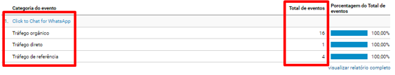 Na imagem acima, demonstramos os eventos realizados no site no mês de novembro de 2021. Esses eventos rastreáveis foram feitos via WhatsApp. Além desses, diversos contatos são feitos através do telefone da empresa.