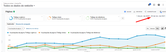 Nesta outra imagem, vemos o tráfego orgânico desde o início do projeto até novembro de 2021. Veja os números incríveis atingidos: