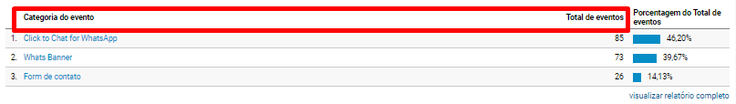Aqui podemos verificar os eventos realizados no site através do Google Ads no mês de janeiro em comparação com dezembro. Crescimento de 868,42% em contatos com a empresa. Esses eventos rastreáveis foram feitos pelo ícone do WhatsApp e formulário de contato do site. Além desses, diversos contatos são feitos através do telefone da empresa.