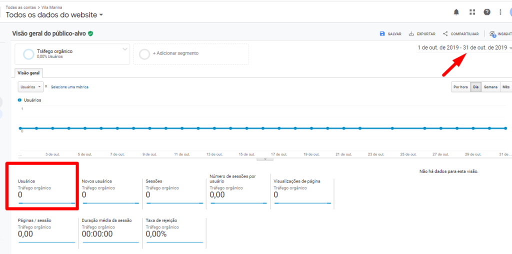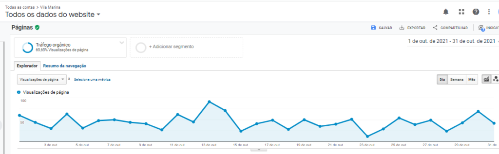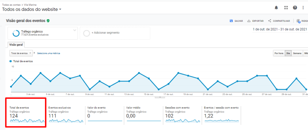 Imagem: Demonstração dos eventos de tráfego orgânico, realizados no mês de outubro de 2021 no site.