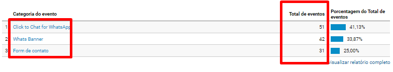 Na imagem acima, demonstramos os eventos realizados no site no mês de outubro de 2021. Esses eventos rastreáveis foram feitos via WhatsApp e formulário de contato. Além desses, diversos contatos são feitos através do telefone da empresa.