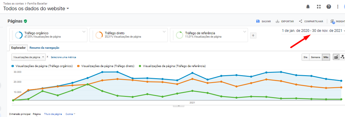 Imagem: Demonstração dos eventos de tráfego orgânico, realizados no mês de novembro de 2021 no site.