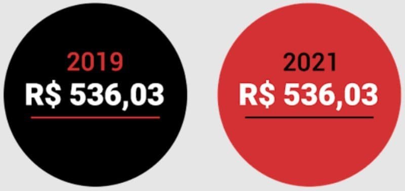 - Quando se trata de ticket médio, também houve aumento em 2021 em relação a 2020: o aumento foi de 21%, elevando o total para R$476,90. O preço médio em um ano sem pandemia foi de R$536,03 em 2019.