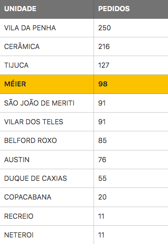 DADOS DO DELIVERY DIRETO – UNIDADE MÉIER