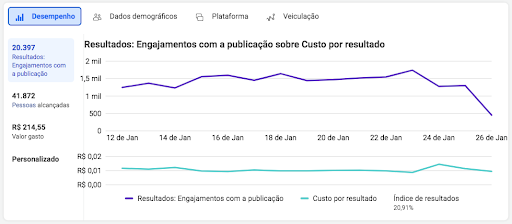 Segue imagem demonstrando os resultados da campanha de engajamento.