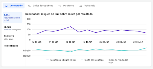 Segue imagem demonstrando os resultados da campanha de tráfego.